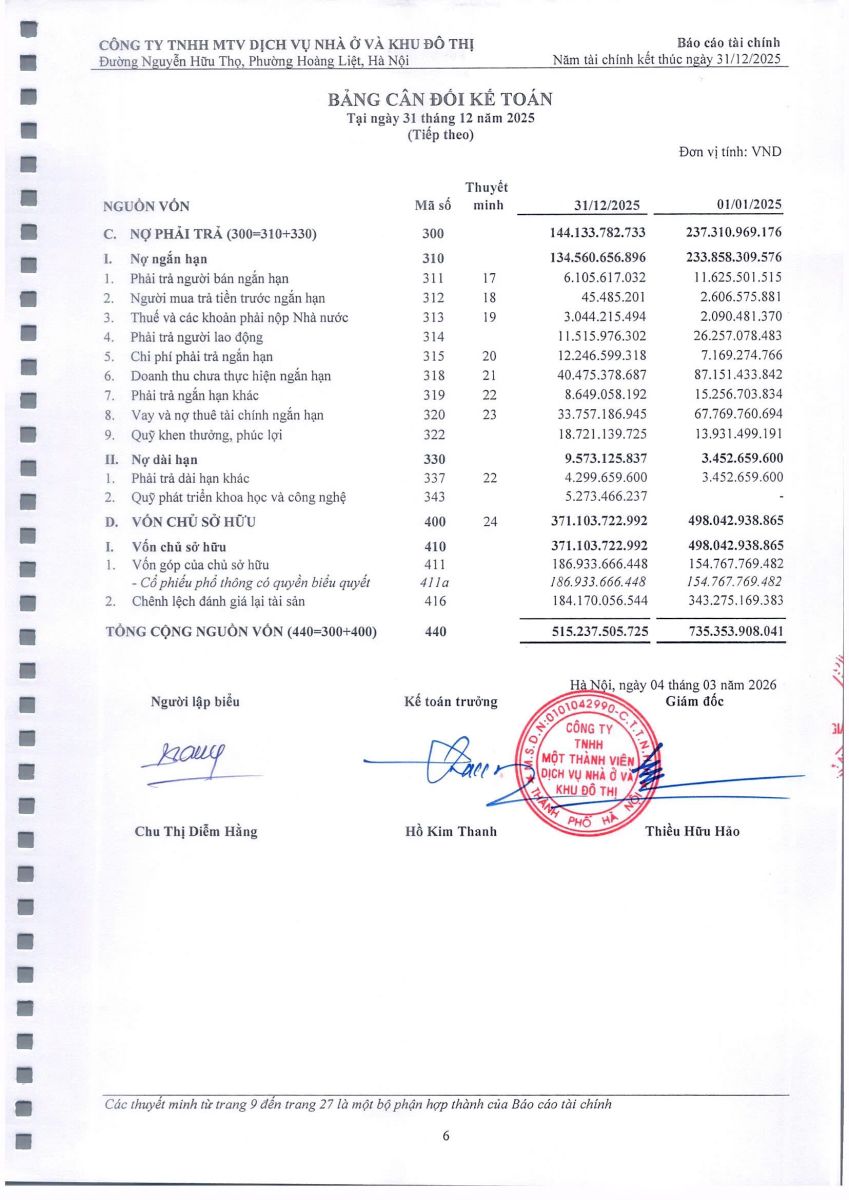 • Công ty HUDS công bố Báo cáo tài chính năm 2025