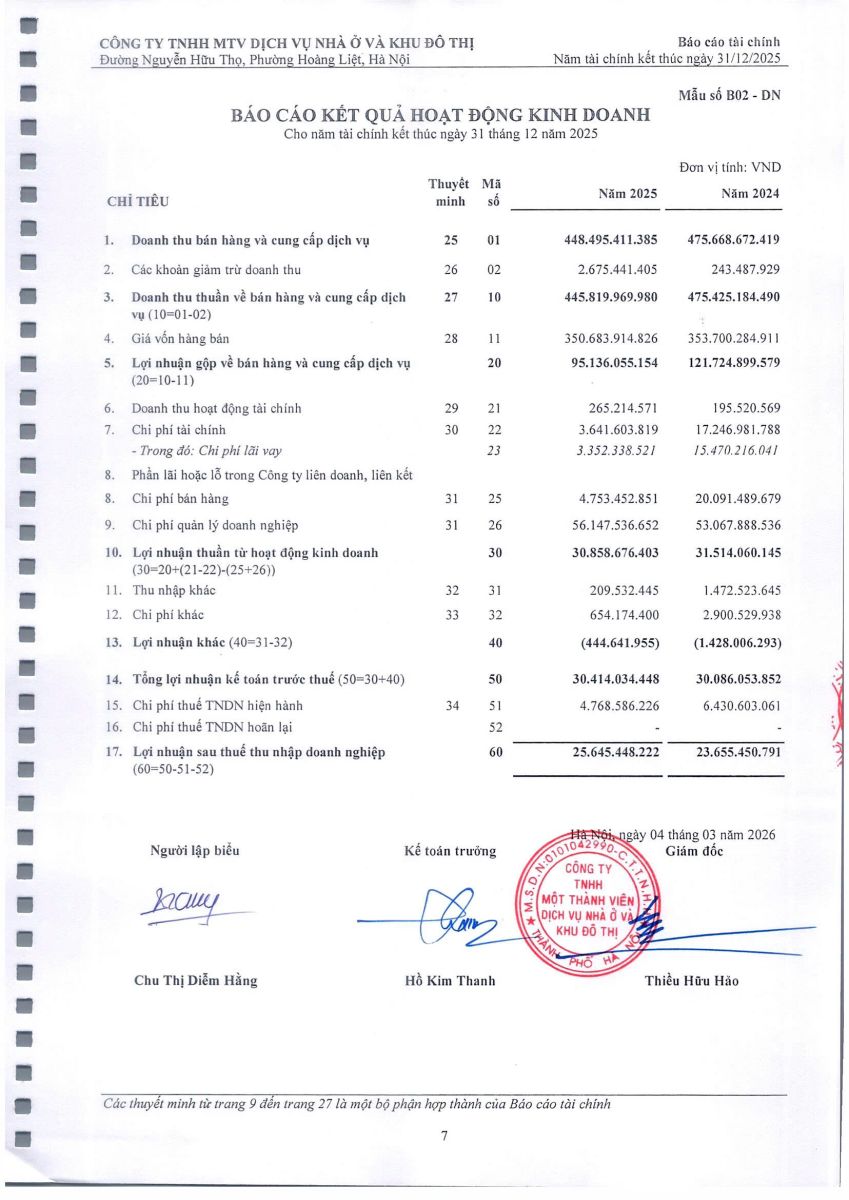Công ty HUDS công bố Báo cáo tài chính năm 2025