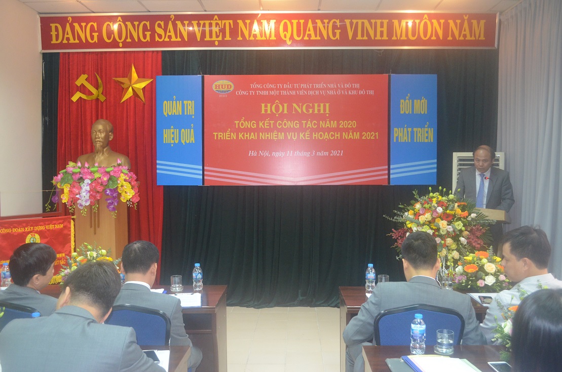 Ngày 11/03/2021 tại Hội trường Công ty TNHH một thành viên Dịch vụ nhà ở và khu đô thị tổ chức Hội nghị tổng kết công tác năm 2020, triển khai nhiệm vụ kế hoạch năm 2021.
