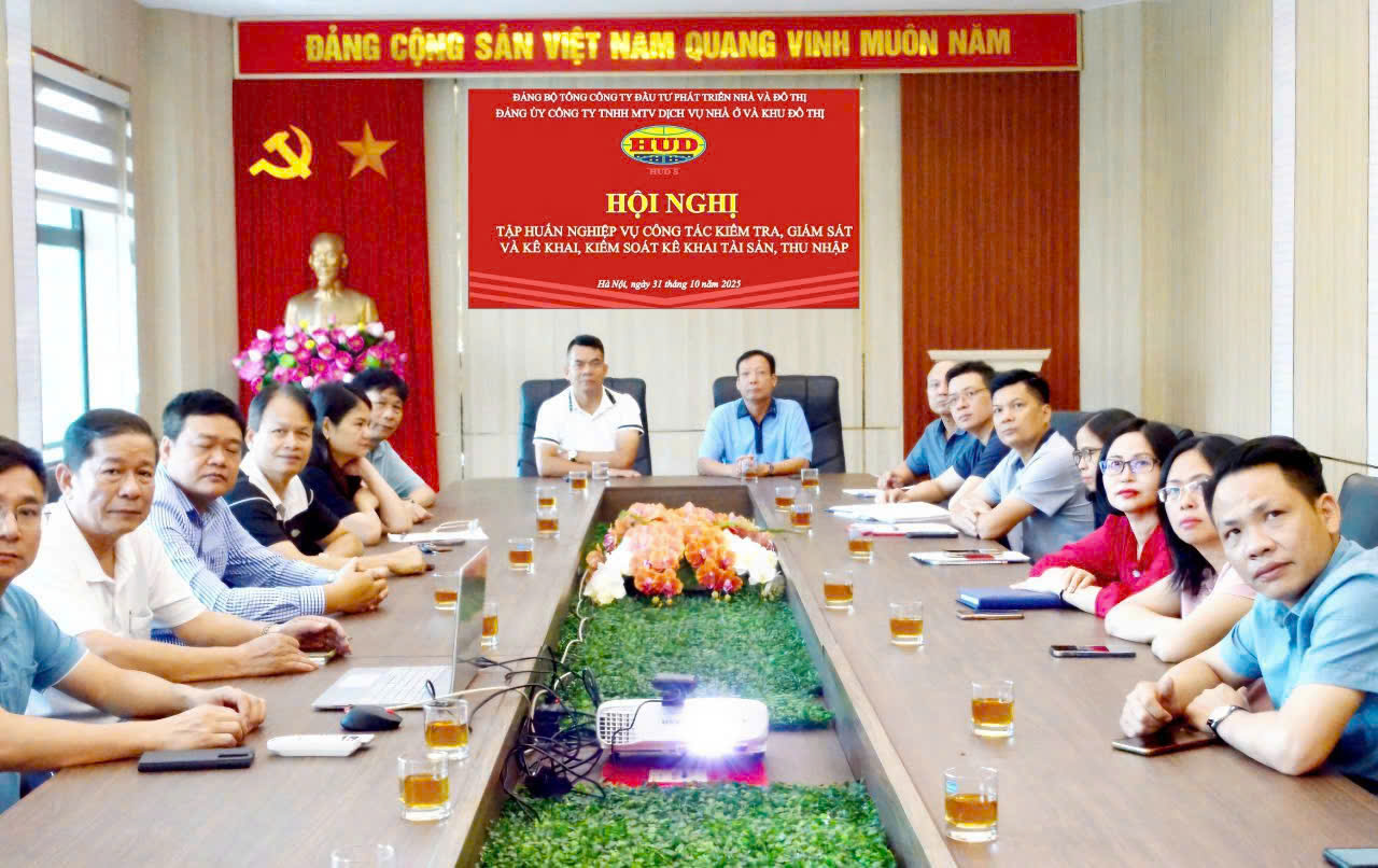 Thực hiện công văn số 08-CV/UBKT, ngày 06/10/2025 và Thông báo số 33-TB/UBKT, ngày 27/10/2025 của UBKT Đảng ủy Tổng công ty về tổ chức Hội nghị tập huấn công tác KTGS, thi hành kỷ luật Đảng và công tác kê khai tài sản thu nhập. Sáng ngày 31/10/2025 tại Trụ sở Tổng công ty, Ủy ban Kiểm tra Đảng ủy Tổng công ty Đầu tư phát triển nhà và đô thị (HUD) đã tổ chức Hội nghị tập huấn nghiệp vụ công tác kiểm tra, giám sát và kê khai, kiểm soát kê khai tài sản, thu nhập. Hội nghị được tổ chức theo hình thức trực tiếp kết hợp trực tuyến, trong đó Đảng bộ Công ty HUDS kết nối trực tuyến với điểm cầu của Tổng công ty. Dự Hội nghị, có các đồng chí UV BTV, UV BCH Đảng bộ, UV Ủy ban Kiểm tra Đảng ủy Công ty; lãnh đạo chủ chốt của Công ty và cán bộ giúp việc đảng tại các Chi bộ đảng trực thuộc.