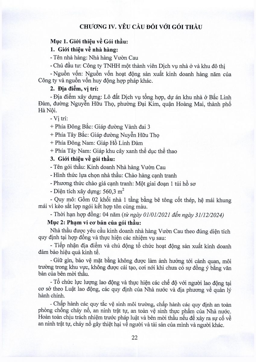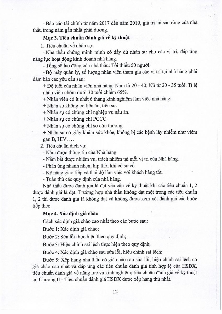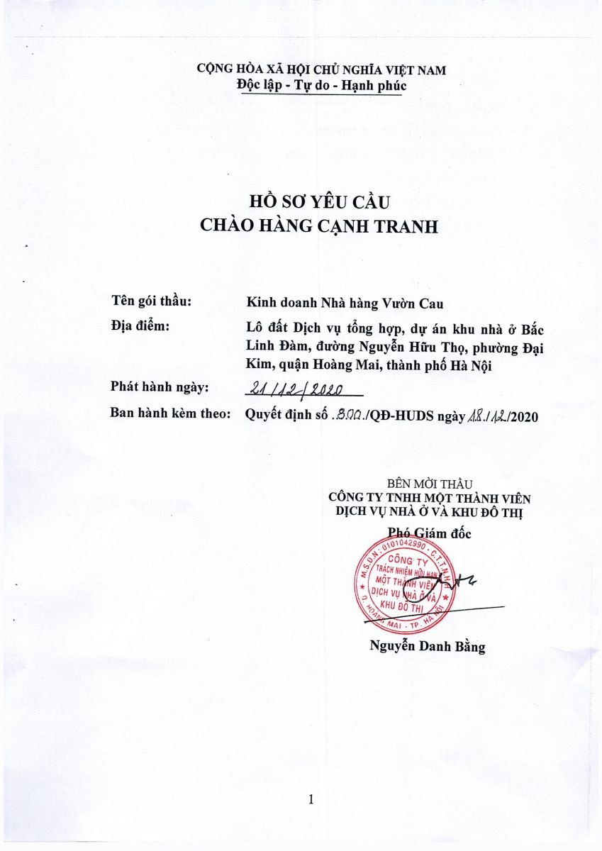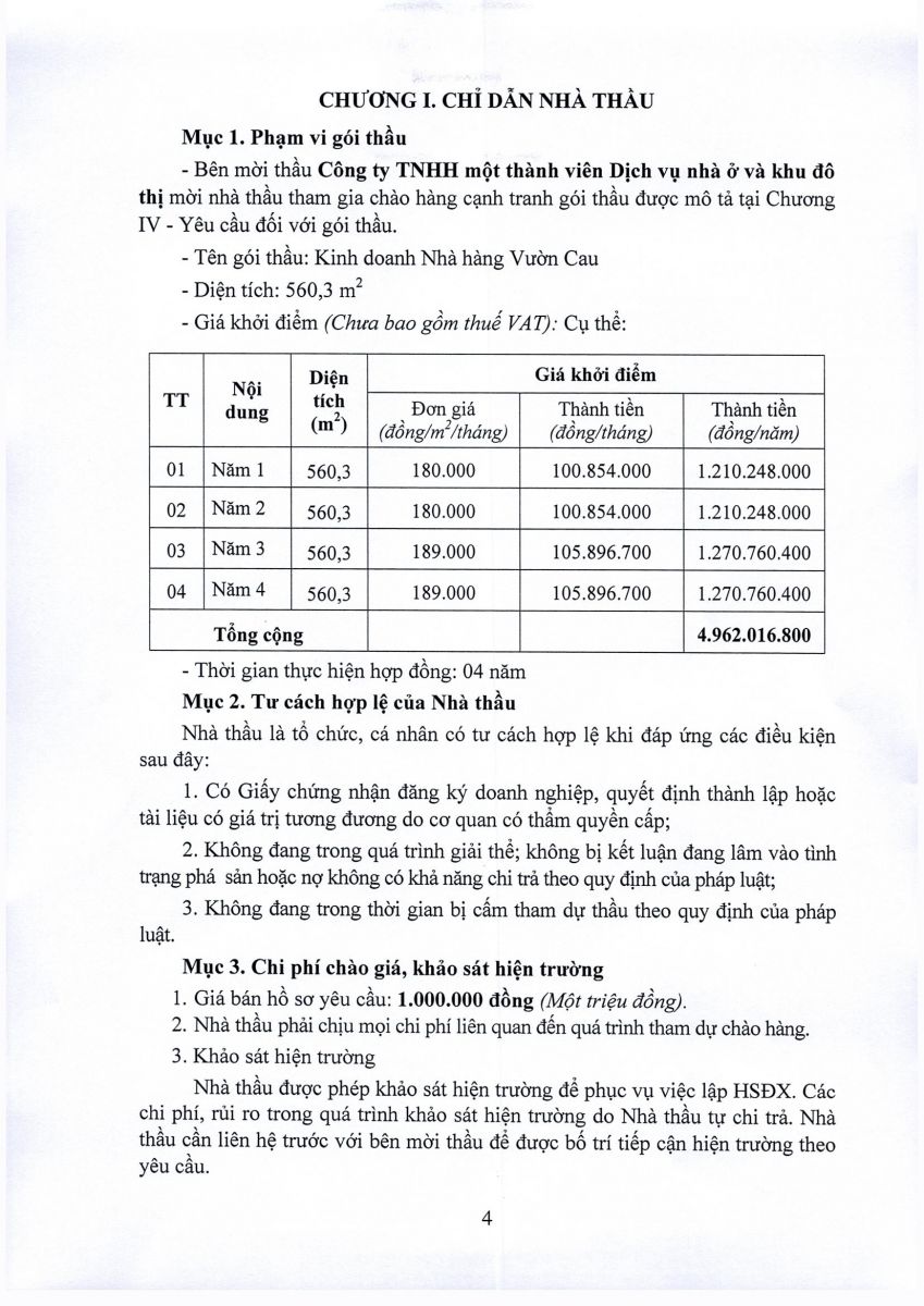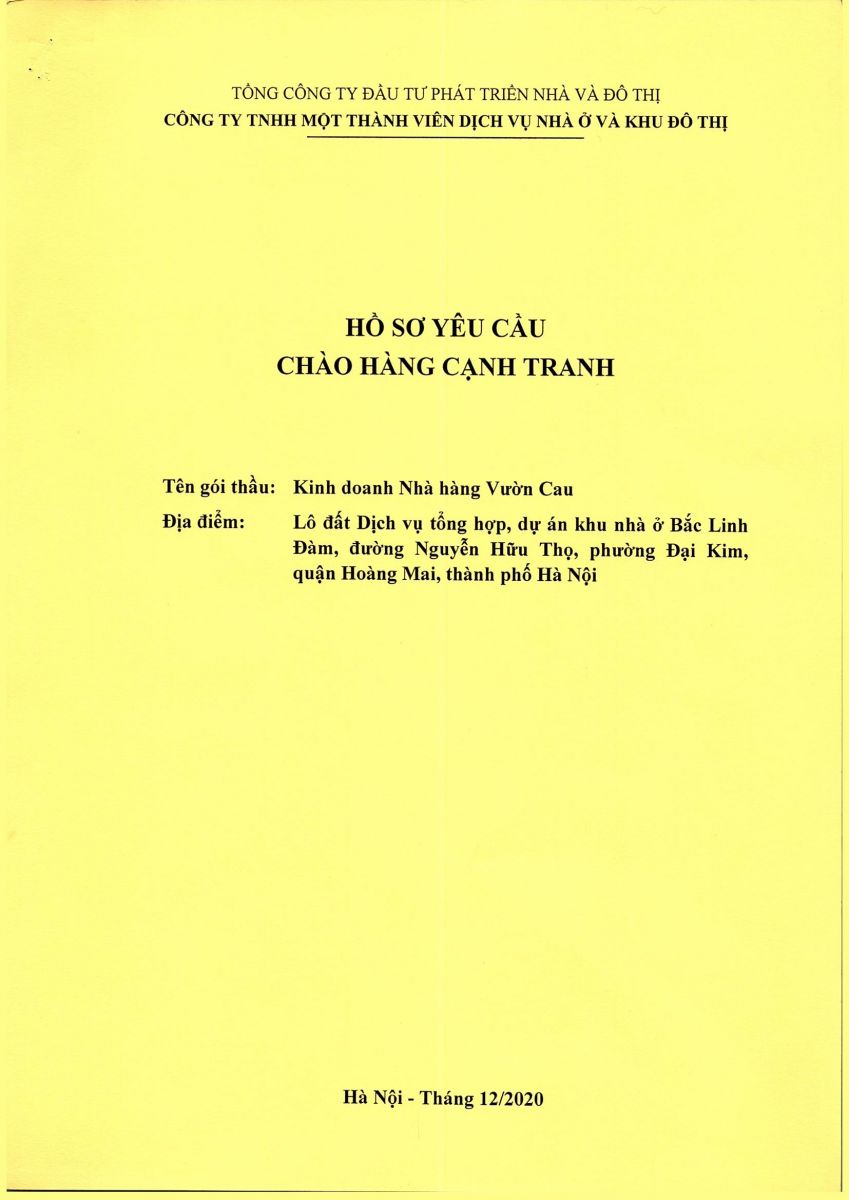 HỒ SƠ YÊU CẦU CHÀO HÀNG CẠNH TRANH GÓI THẦU KINH DOANH NHÀ HÀNG VƯỜN CAU