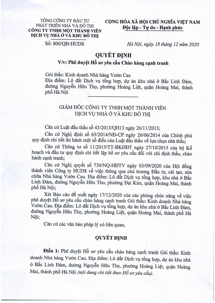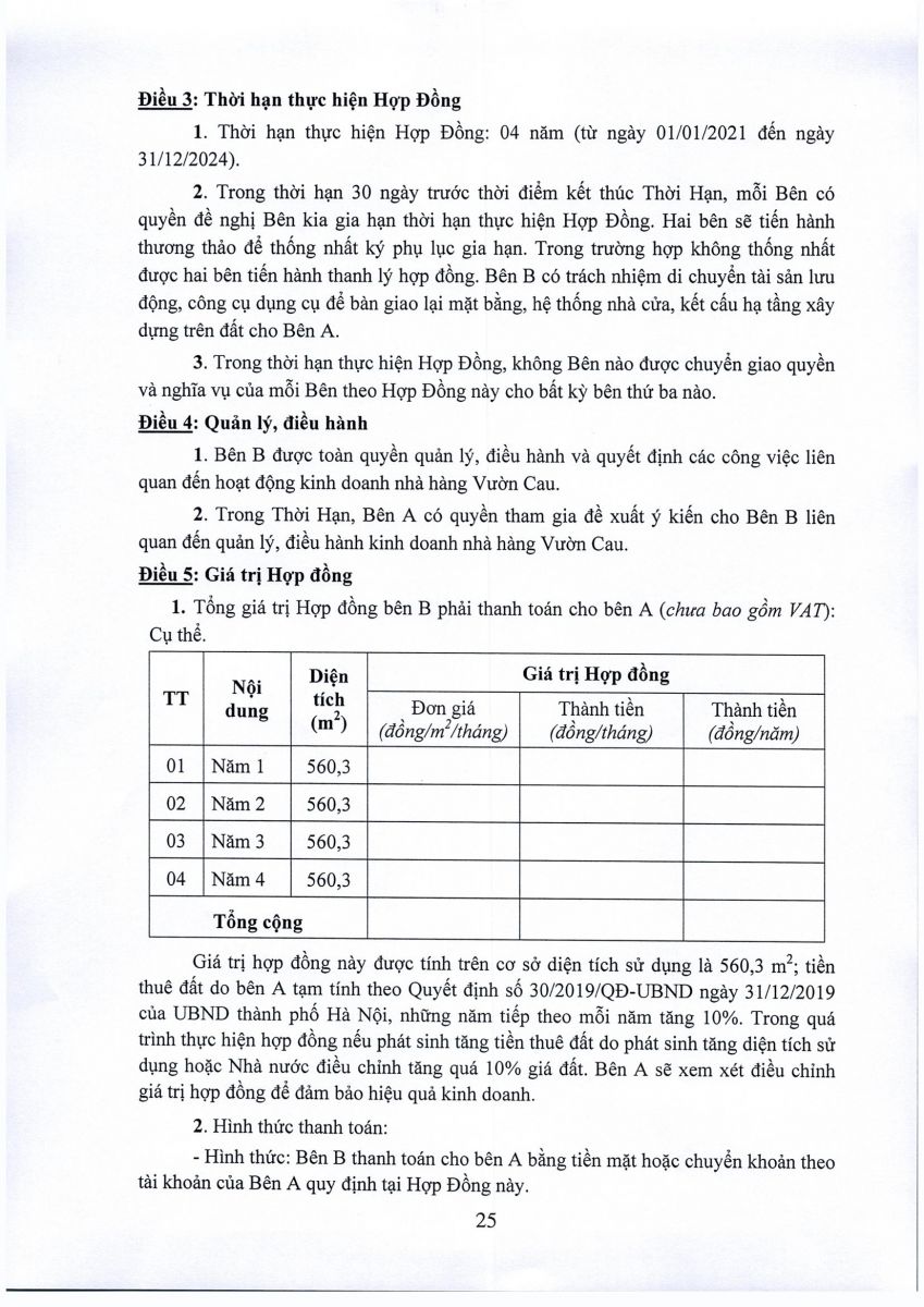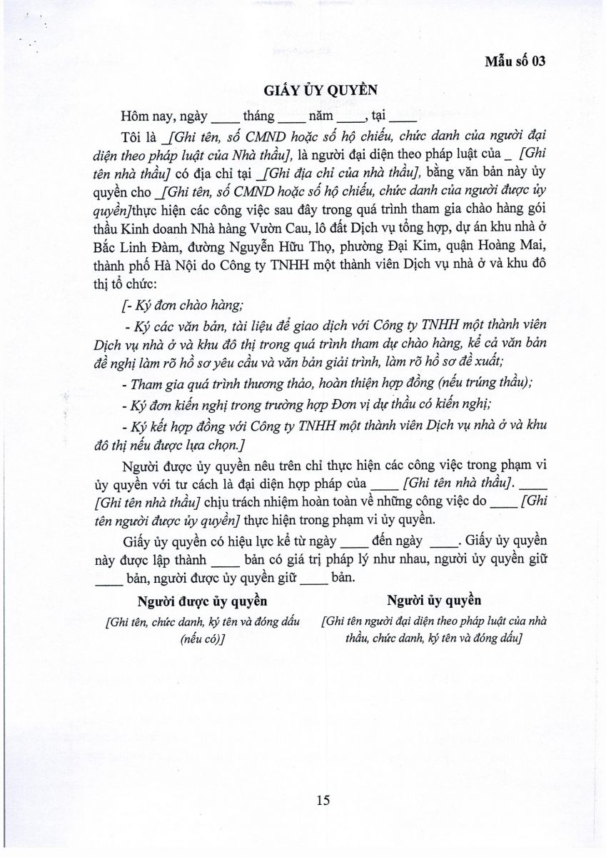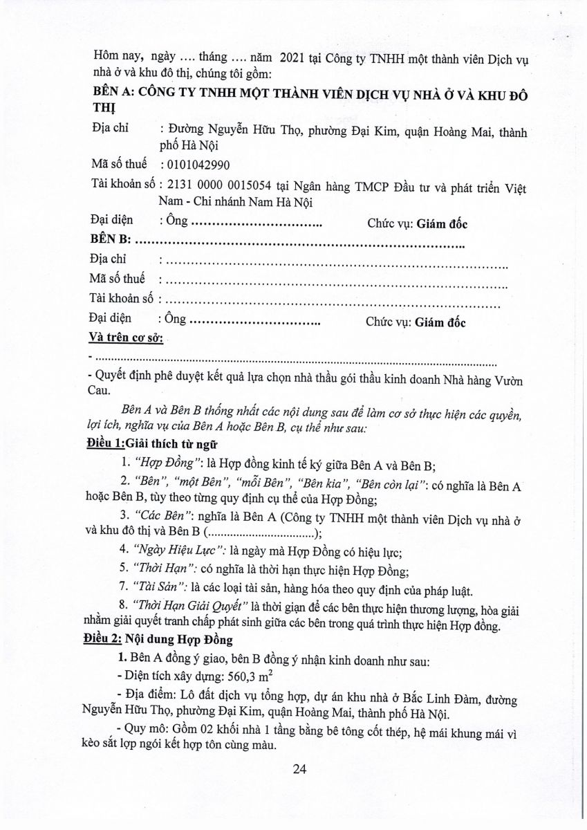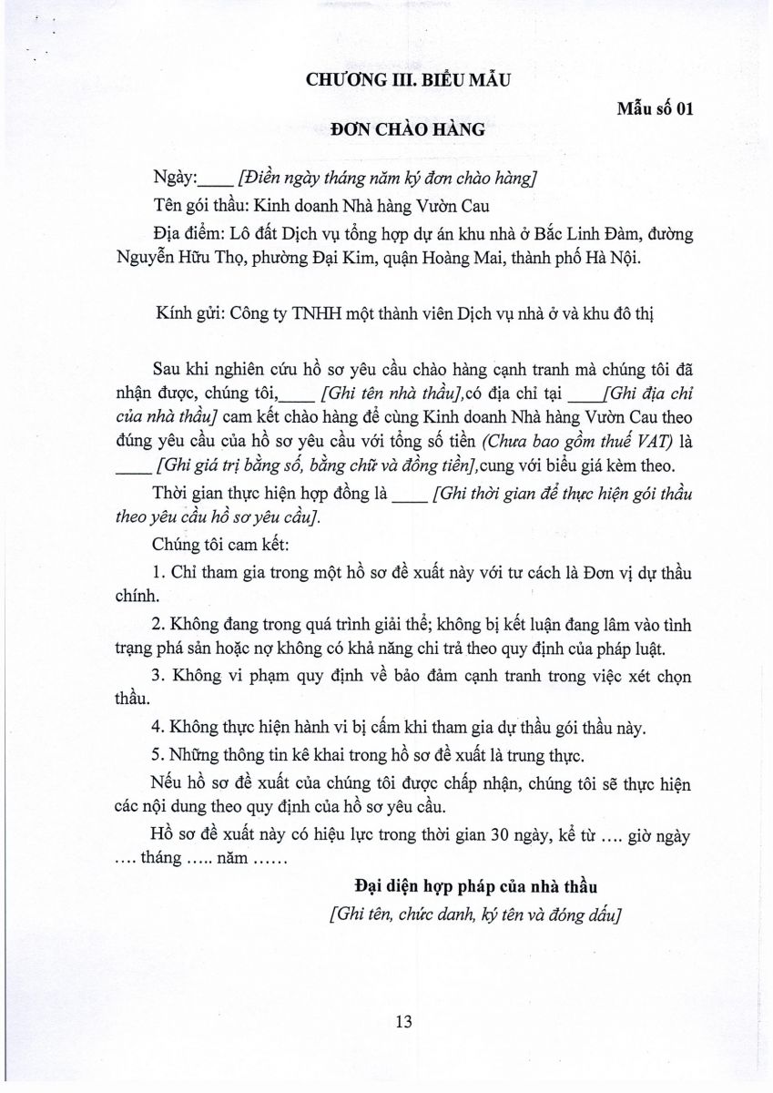 HỒ SƠ YÊU CẦU CHÀO HÀNG CẠNH TRANH GÓI THẦU KINH DOANH NHÀ HÀNG VƯỜN CAU