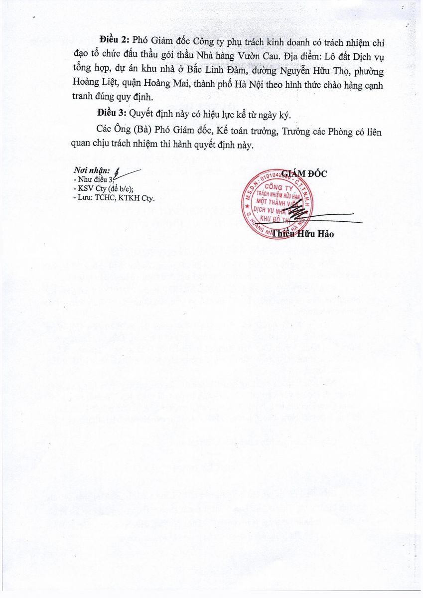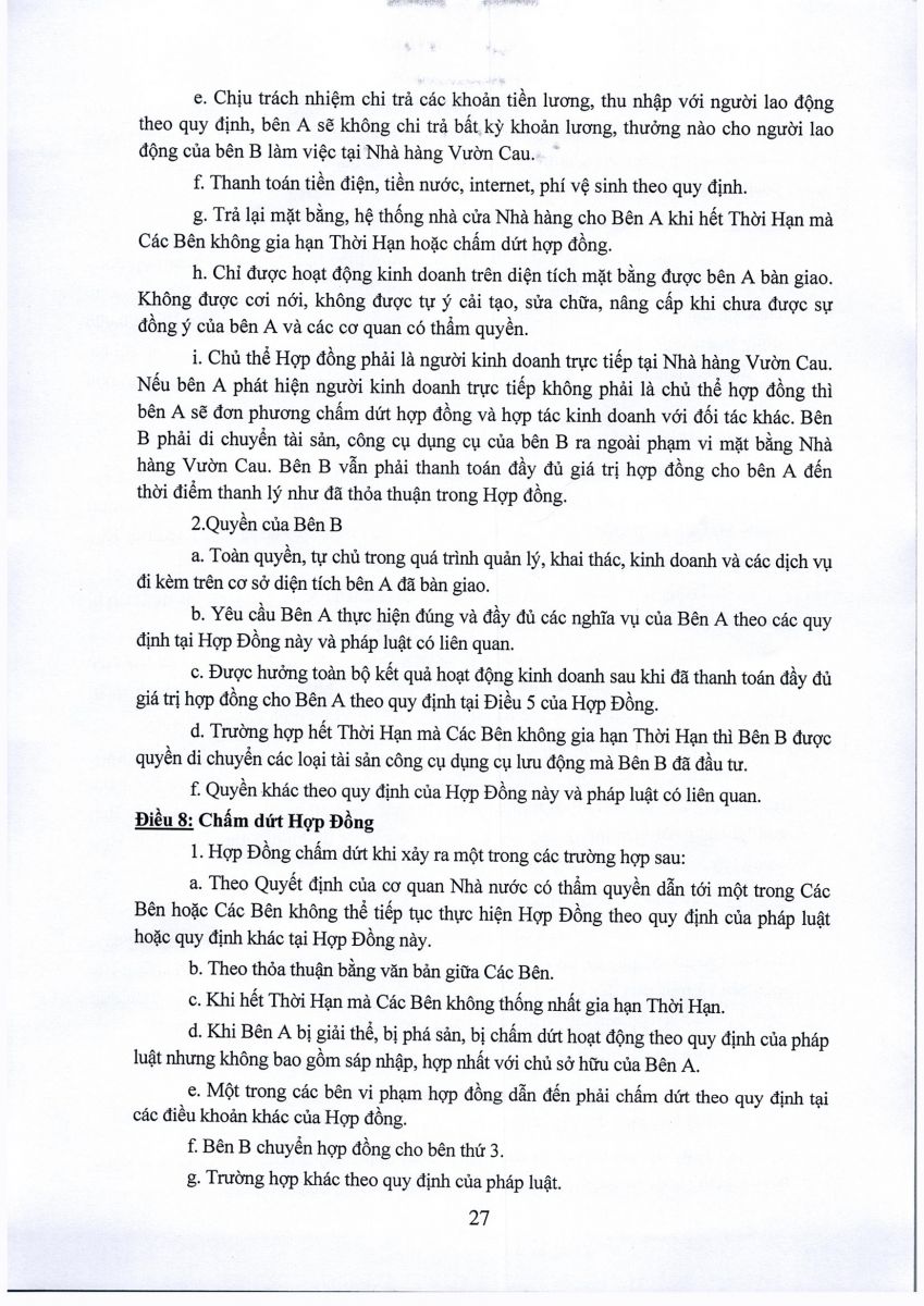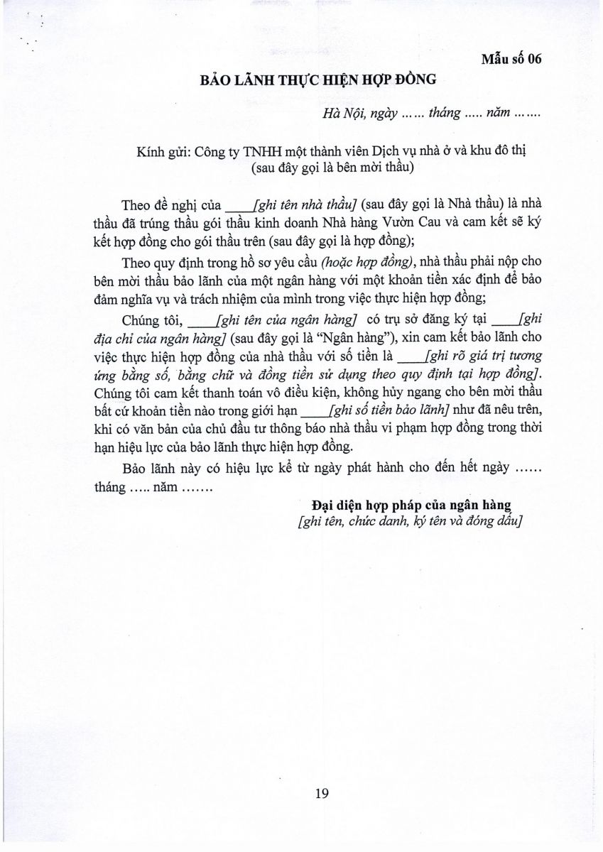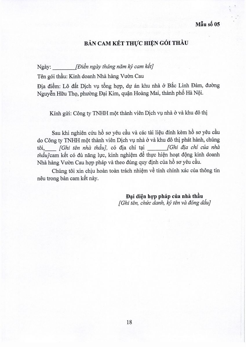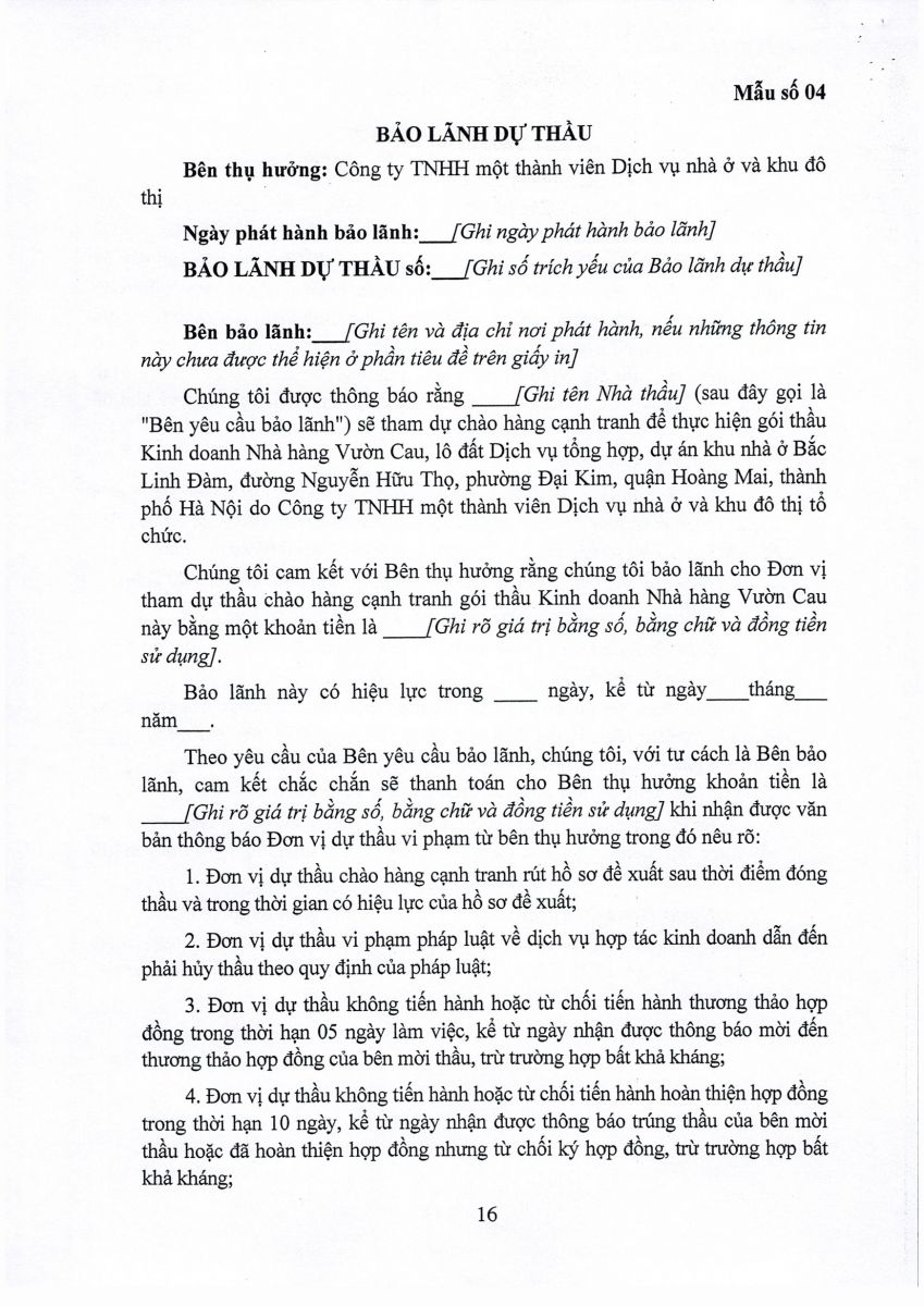 HỒ SƠ YÊU CẦU CHÀO HÀNG CẠNH TRANH GÓI THẦU KINH DOANH NHÀ HÀNG VƯỜN CAU